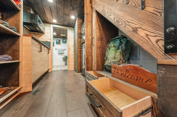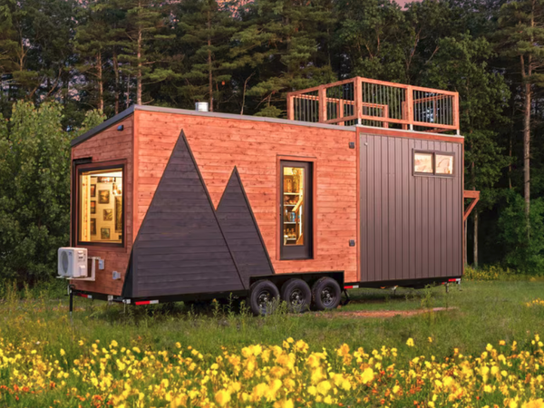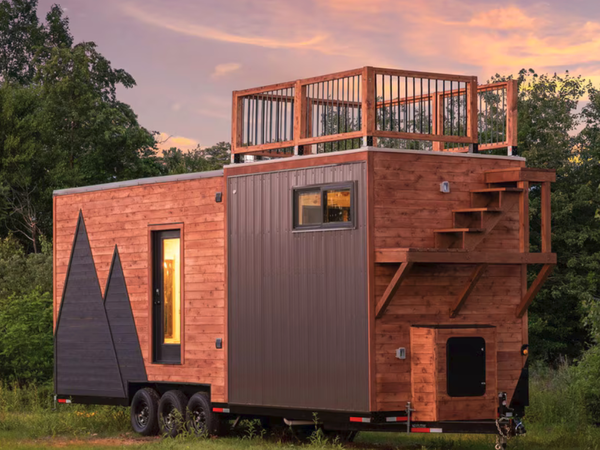 The Park Tiny Home с террасой на крыше делает компактную жизнь в кемпере еще более комфортной.